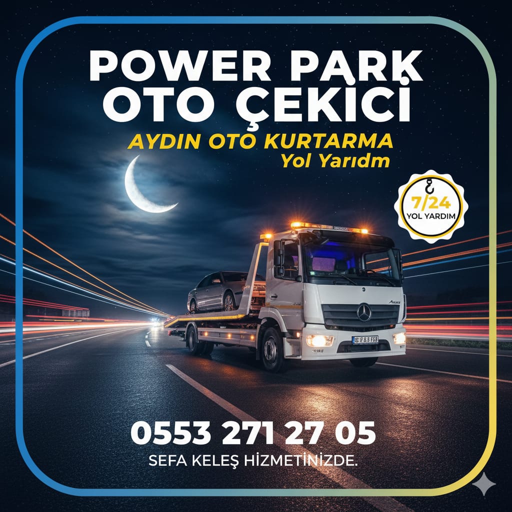 Power Park Oto Çekici, Aydın Efeler merkezli 7/24 oto çekici, oto kurtarma ve acil yol yardım hizmeti sunar. Aydın genelinde hızlı ve güvenilir destek.